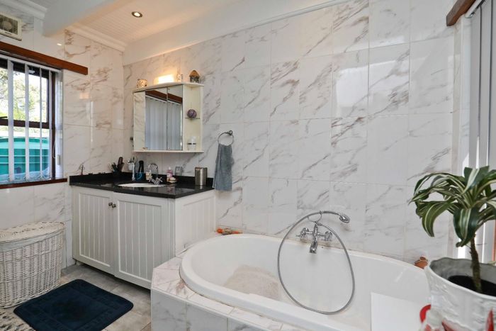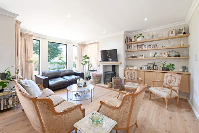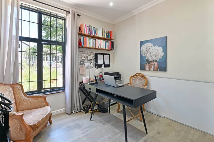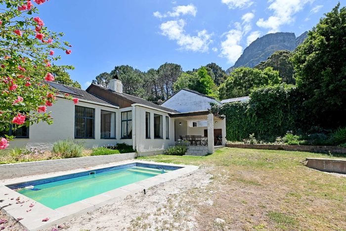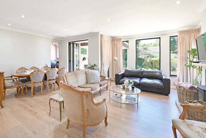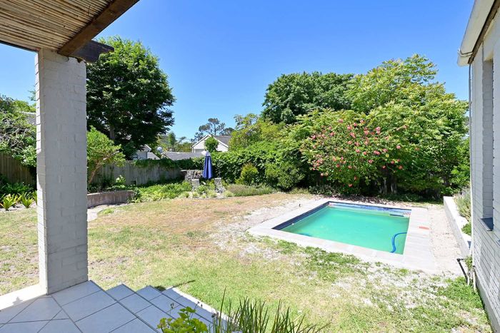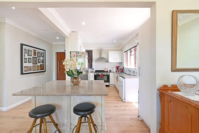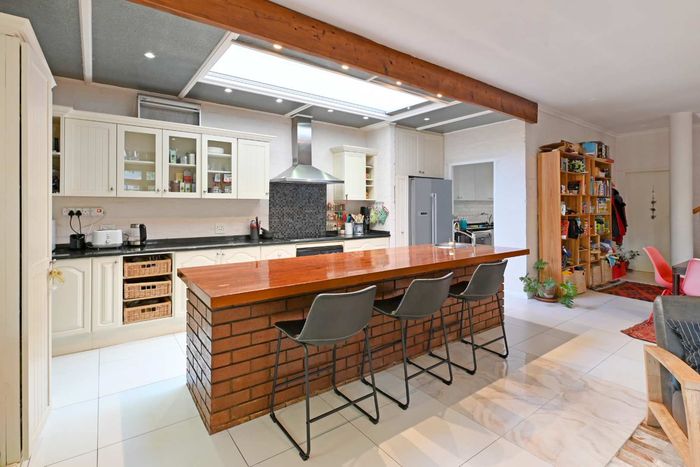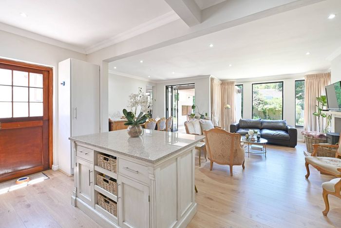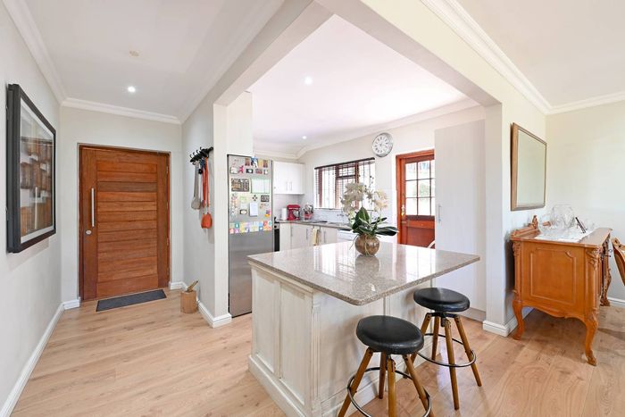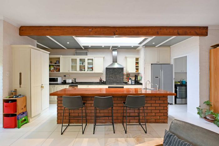Entertainer's dream in Kenilworth with park-like garden, pool and sun deck — open-plan island kitchen flowing to semi-enclosed patio. Includes separate work-from-home office and three bedrooms.