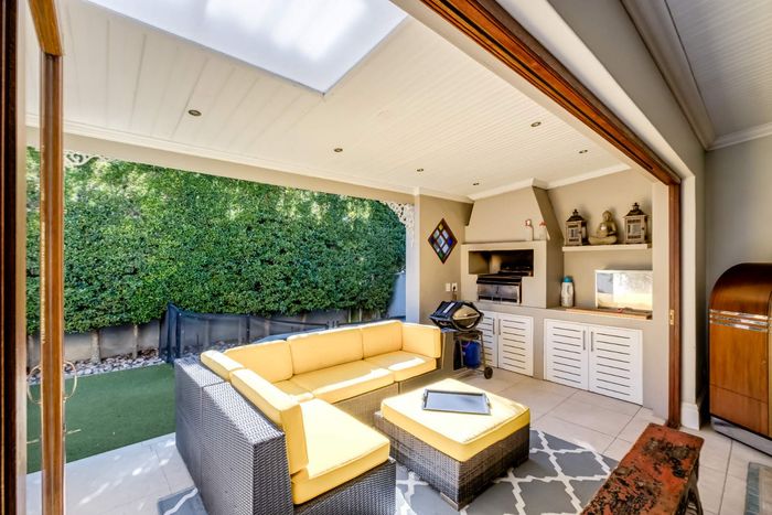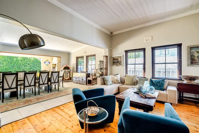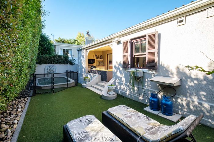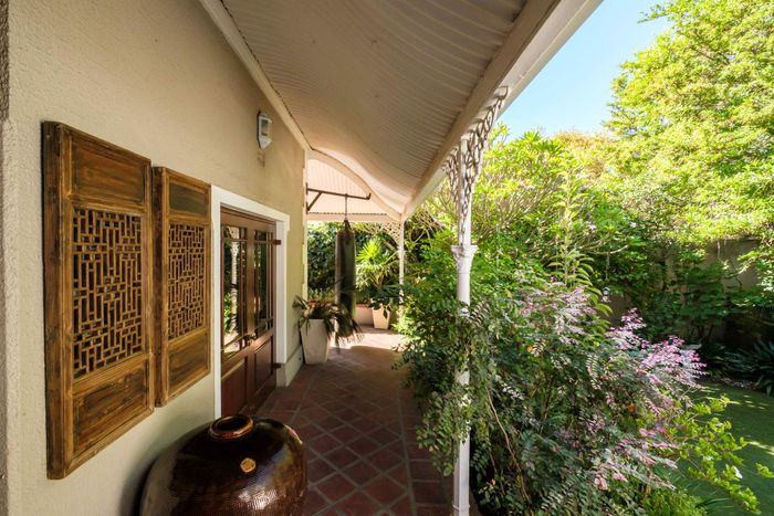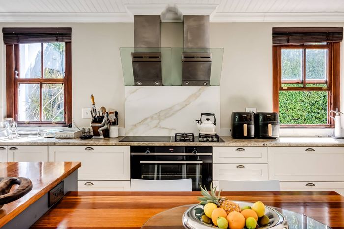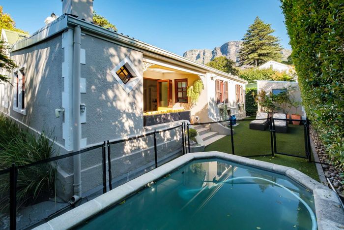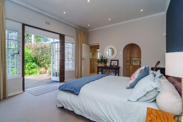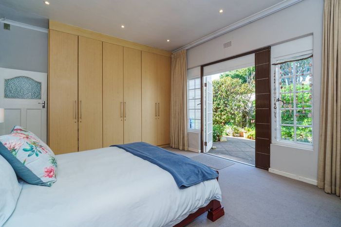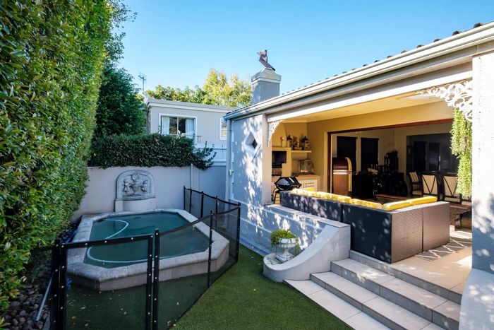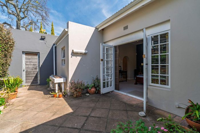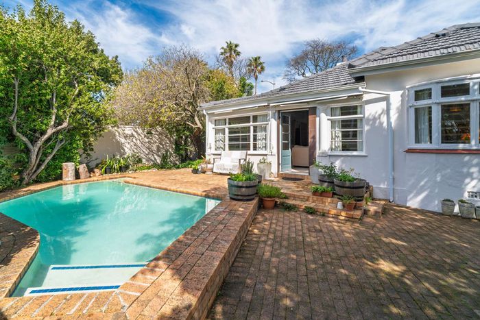 Sunlit garden home opposite the Vineyard Hotel, steps to Newlands Village and Cavendish Square, with pool, mountain views and self-contained studio — 4 beds, 3 baths, 3-car garage.