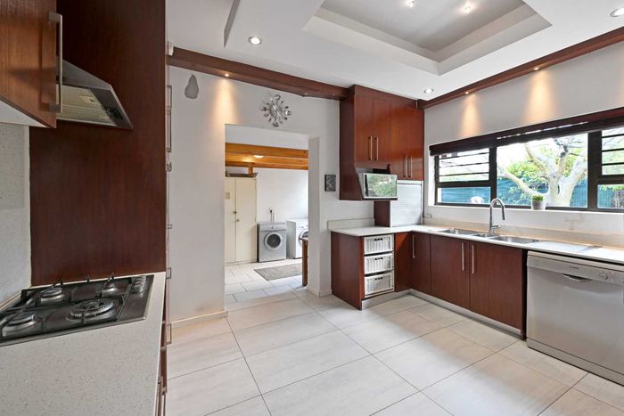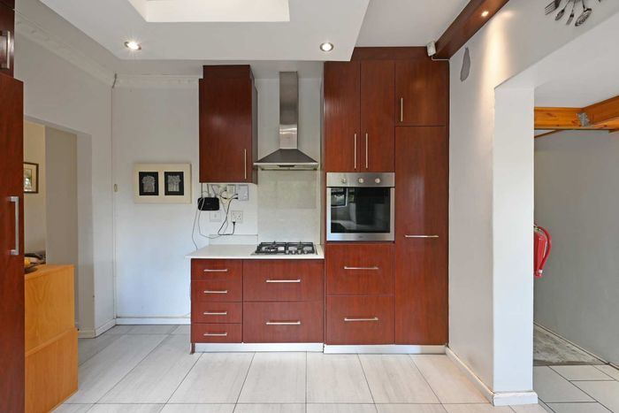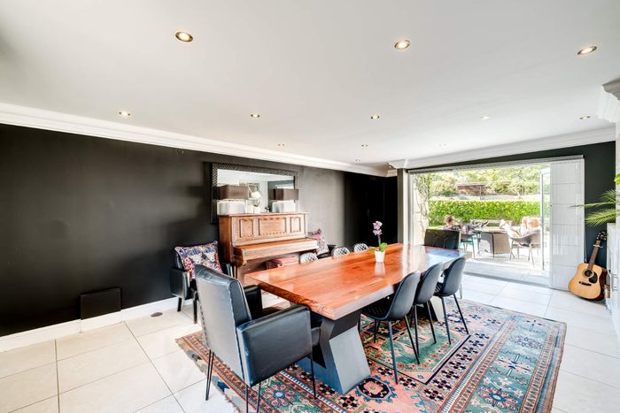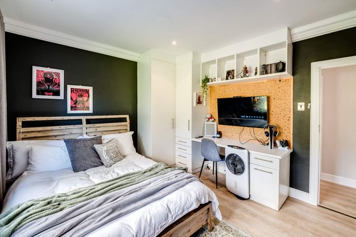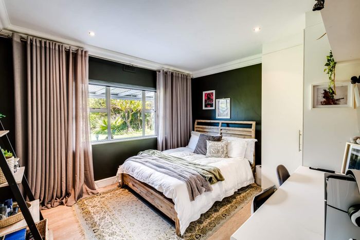 Claremont retreat with leafy front garden and sunlit back garden (pool potential), open-plan lounge to patio and fireplace, gas kitchen, plus 8-bed flatlet yielding R40,040+/month.