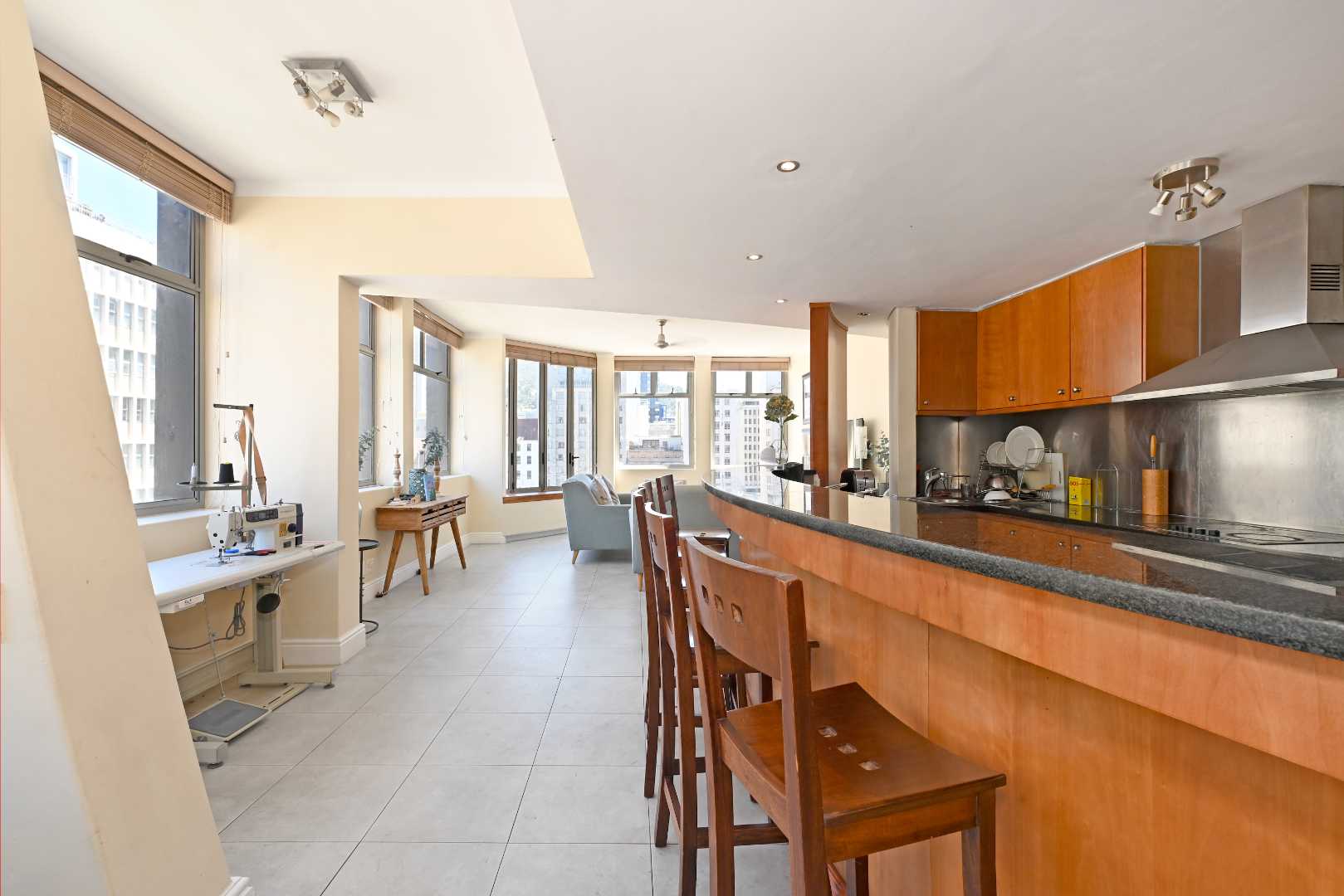 A rare find, this apartment offers direct lift access into your unit with secure key control, ensuring both privacy and convenience. The expansive lounge and living area are bathed in natural light, framed by floor-to-ceiling windows that capture the beauty of the skyline. The sleek, open-plan kitchen is a chef’s dream, complete with black granite countertops, built-in dishwasher, ample storage, and top-of-the-line appliances.