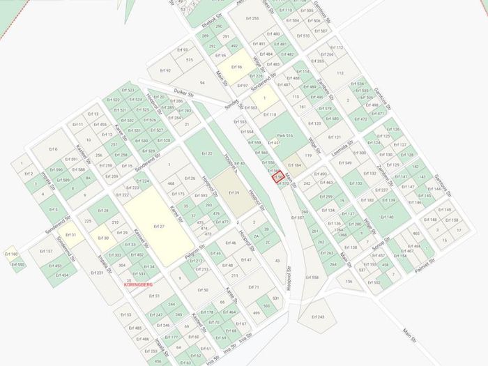 Join village life and business buzz in Koringberg’s Main Street, opposite the historic mill in the heart of the Swartland — 515 m² erf bordering the old railway platform.
