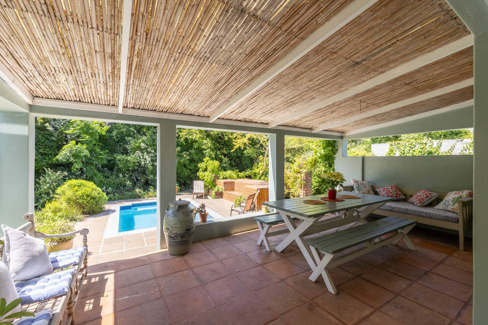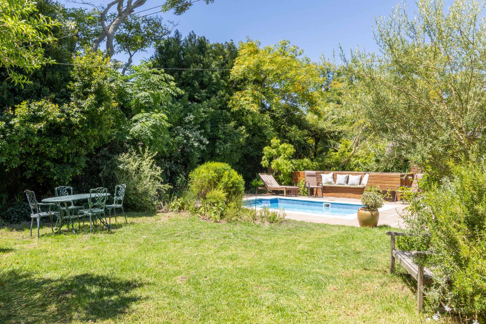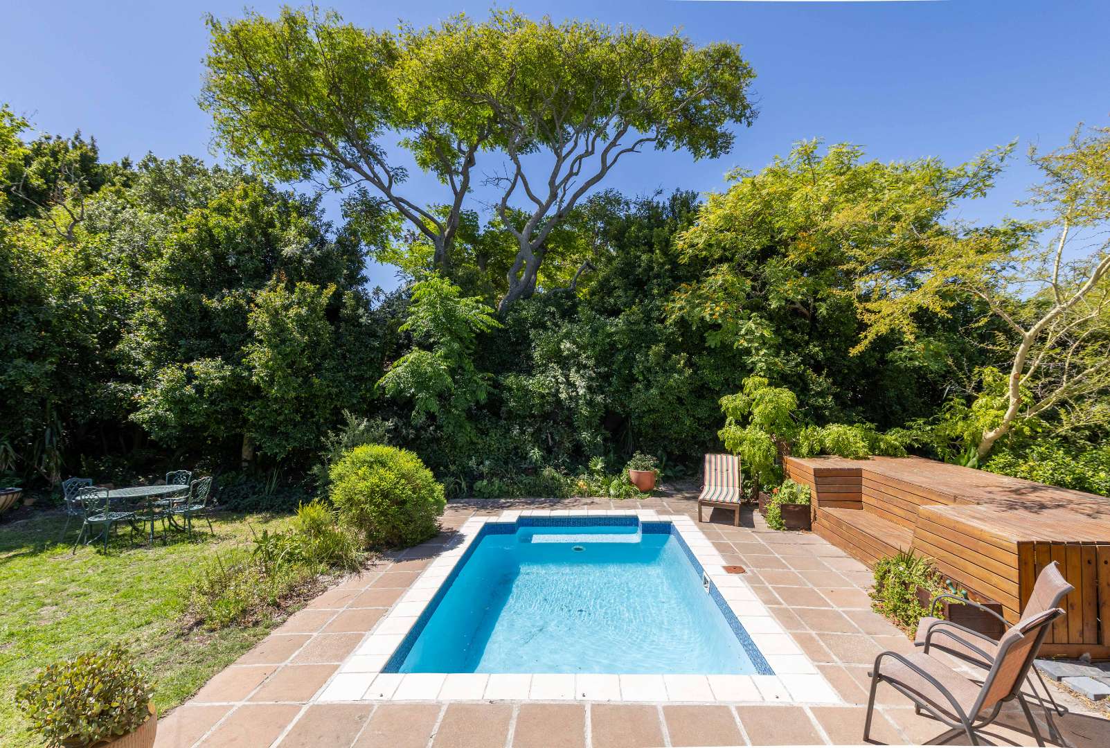 One side of the pool is edged by a sun deck made for lazy afternoons and long, late braais. On the other, a patch of lawn softens into a shady, almost secret garden where kids can disappear into play.