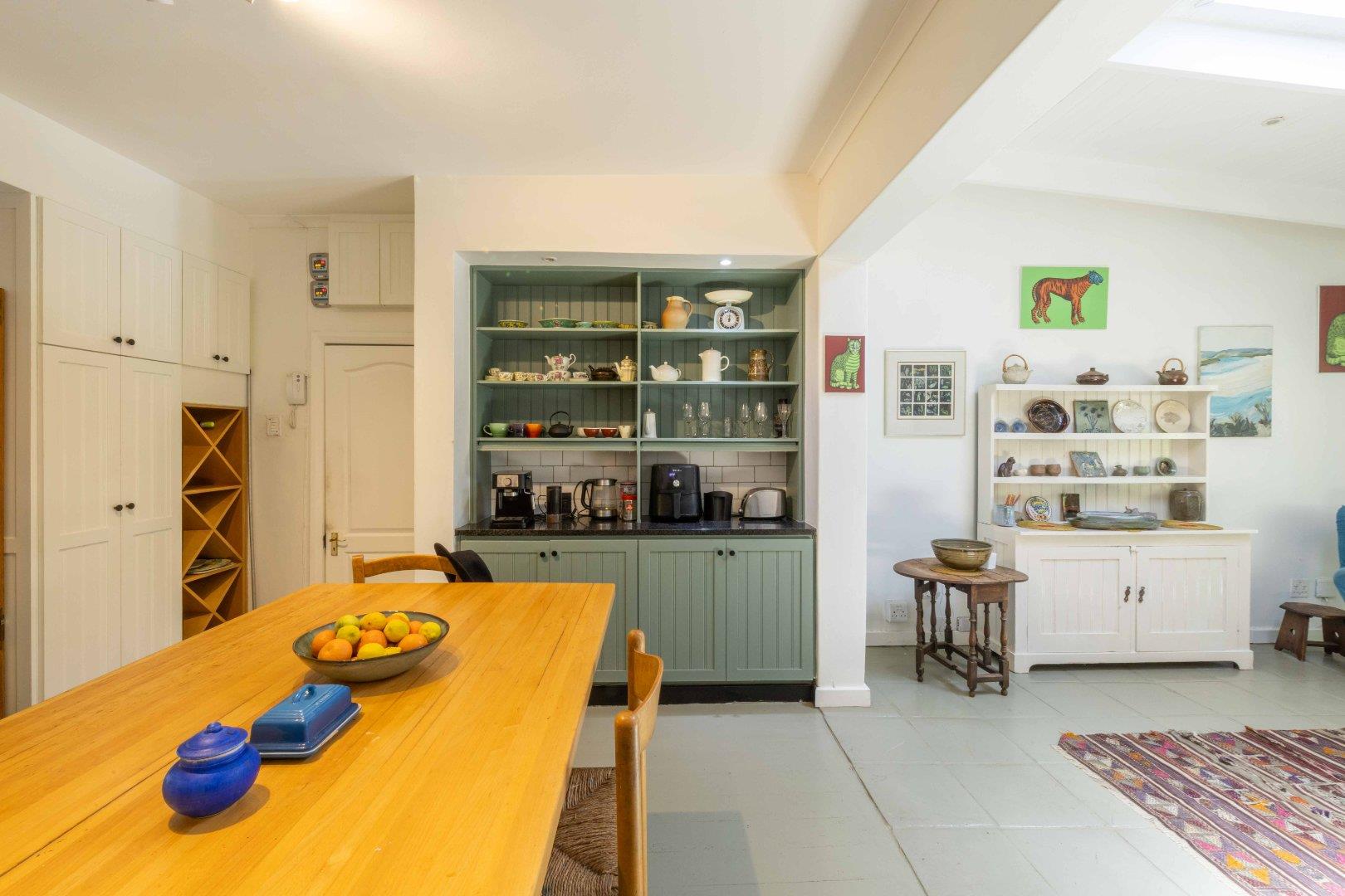 The open-plan kitchen is definitely the heart of the house with its central island for cooking and catching up. It has a 5-plate gas hob, electric oven, double-sink, great storage, including a wine-rack, and is plumbed for a dishwasher.