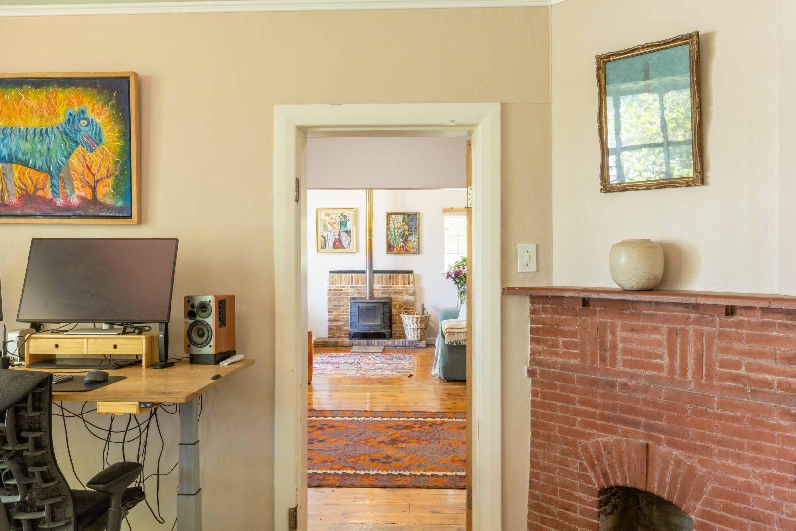 The study, which leads off the lounge, has its own small original fireplace adding a quirky feature to this spacious work-space.