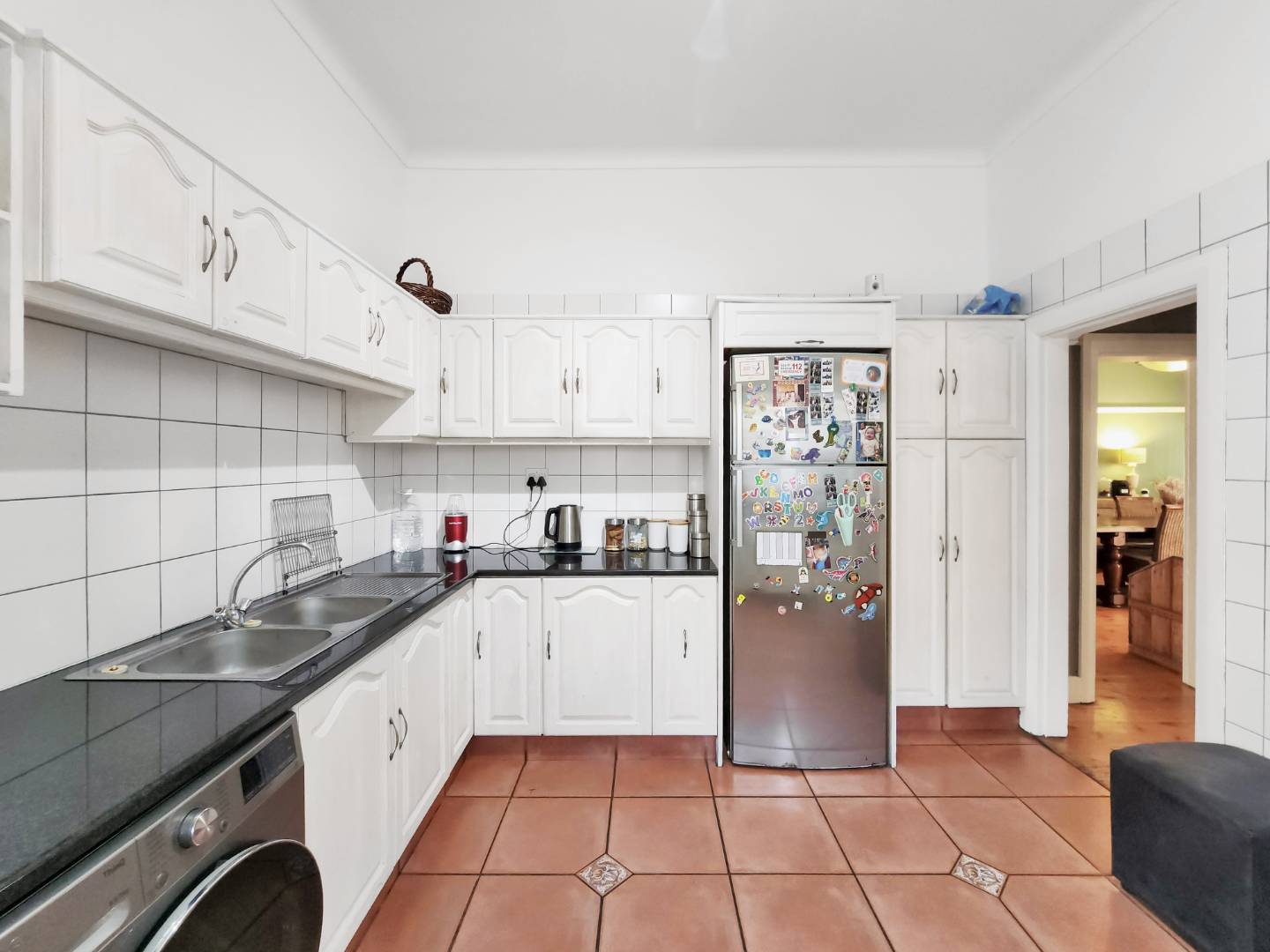 - Plenty of storage and space for a 3/4 fridge.
