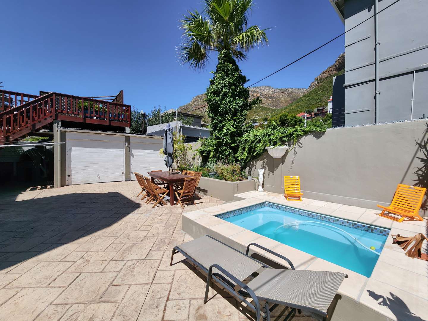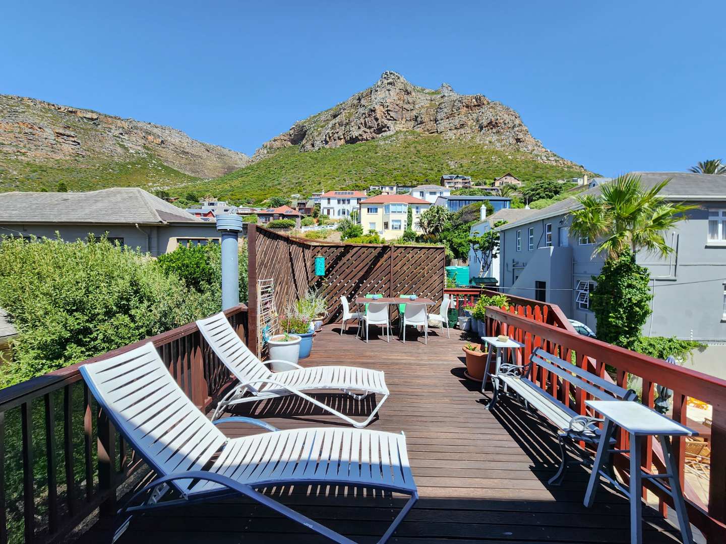 - A deck with breathtaking views of Muizenberg Mountain.