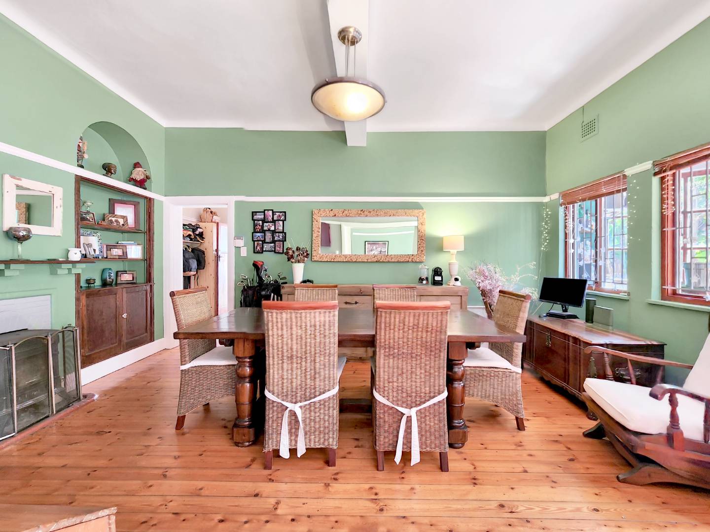 - Open-plan dining area flows seamlessly into the lounge, complete with a cozy fireplace.