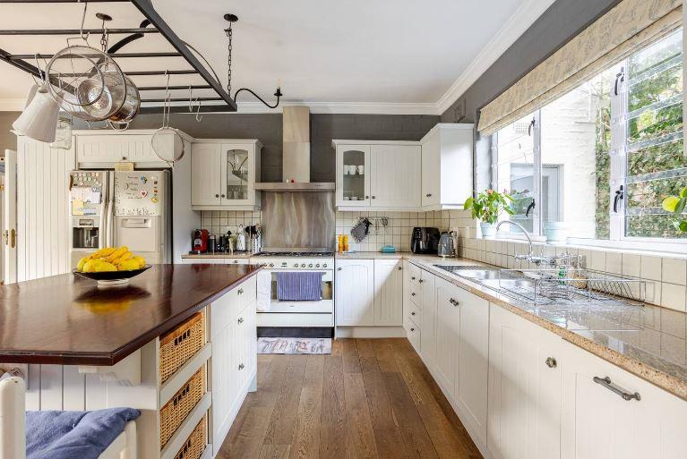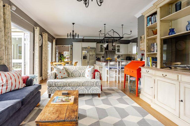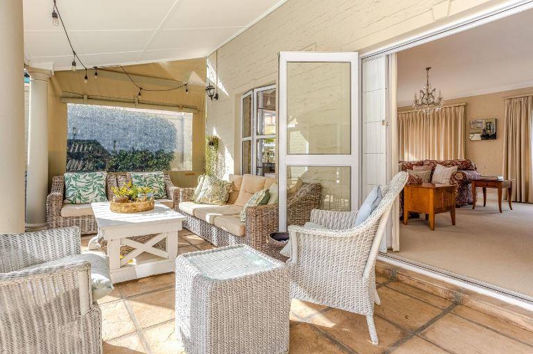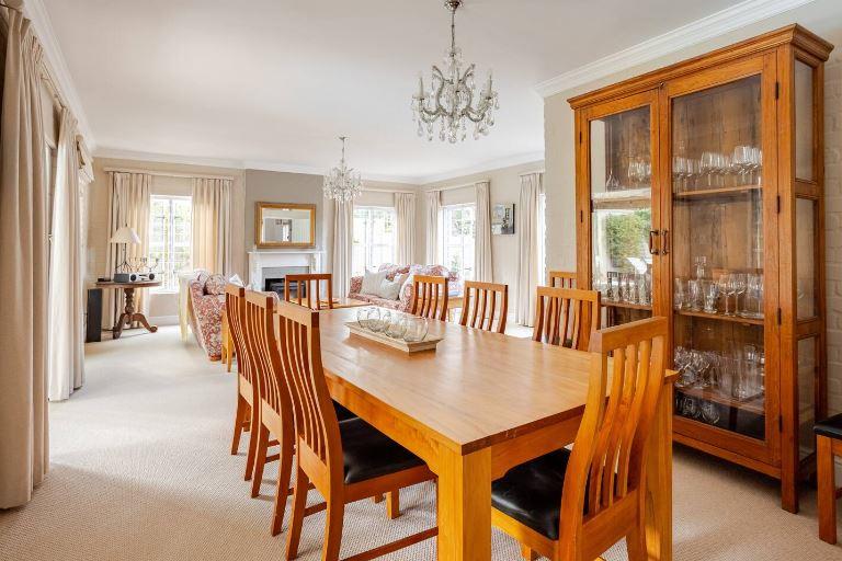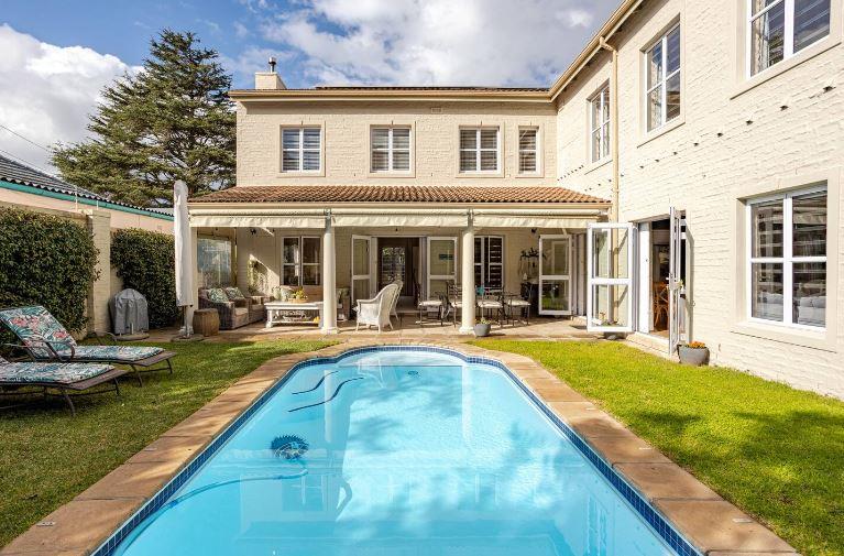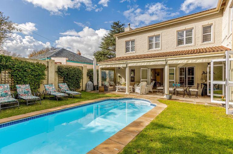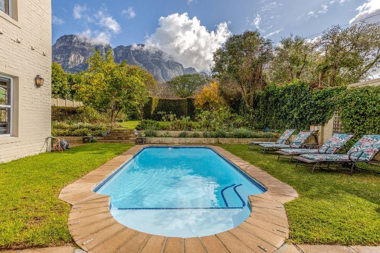 Elegant North/West facing home with mountain views situated on a large stand offering 4 carpeted bedrooms, 3 bathrooms (2 of which are en-suites and 1 family bathroom), guest cloakroom, open plan lounge and dining room with fireplace and doors leading out to the covered patio, separate family/TV room with fireplace open plan to the kitchen with doors leading out to the borehole run garden and pool, breathtaking mountain views and double garage with secure parking for 2.