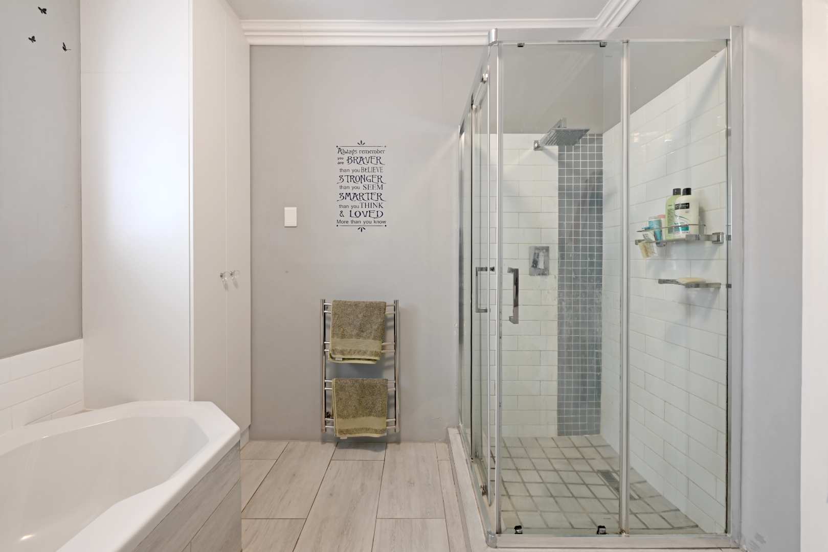 The parking consists of a double garage with direct access into the home and secure parking for another 4 plus cars behind the automated gate. The security includes electric fencing, an alarm system and burglar bars. The borehole is linked to the irrigation with a filtration system installed and an inverter/ battery just in case our load shedding shows its face again.