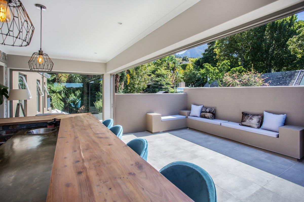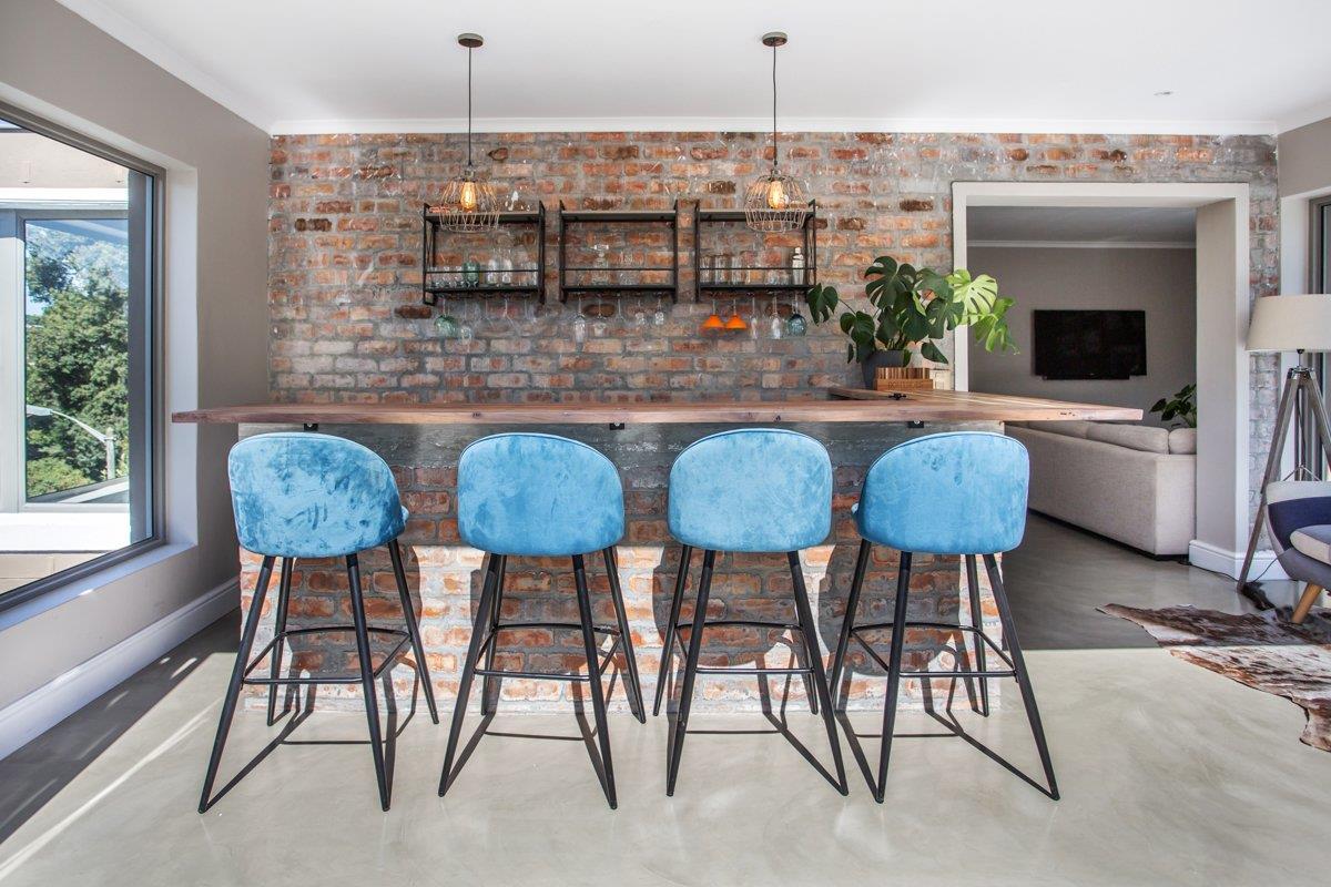 Upstairs sits the generous main suite with a walk-through closet boasting elevated East views, accompanied by the second bedroom with access to a private balcony facing West. Both carpeted with fitted air-con units catering for comfort during the hotter summer months. Positioned between the two bedrooms sits the upstairs pyjama lounge with flawless screed flooring and a trendy exposed brick feature wall, with the entrance to the outdoor fitted bar/ lounge balcony with the most incredible views of our mountain as well as a window to the Valley view – an absolute game changer!