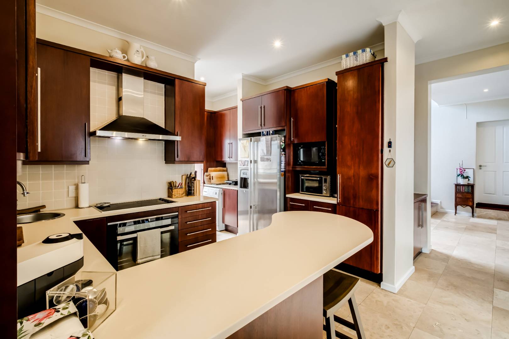 The kitchen consists of Caesarstone countertops, an electric stove/ oven/ extractor, prep sink, space for a three-quarter size fridge and a scullery/ laundry with plumbing for 2 appliances. A double garage, as well as 2 off-street bays completes the parking, houses on this quiet street in Fernwood Upper are seldom available.
