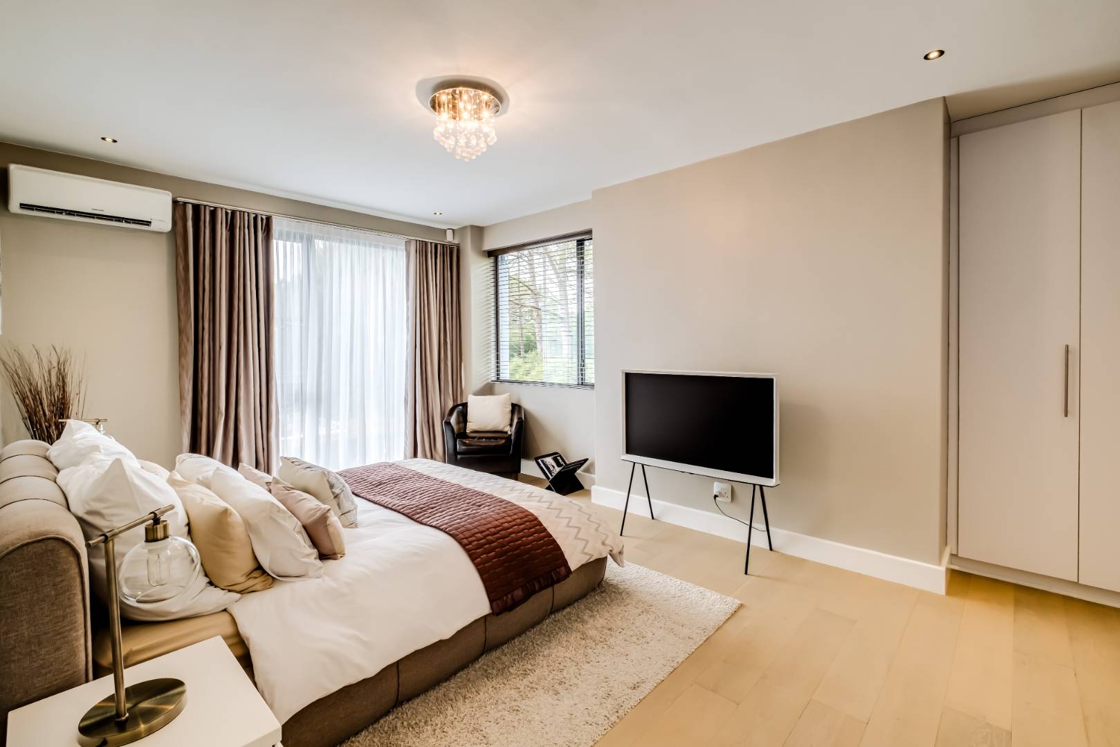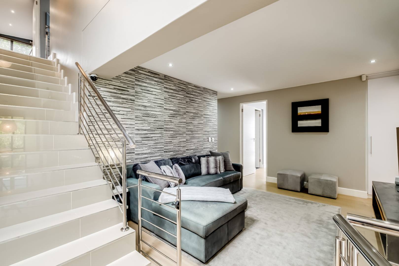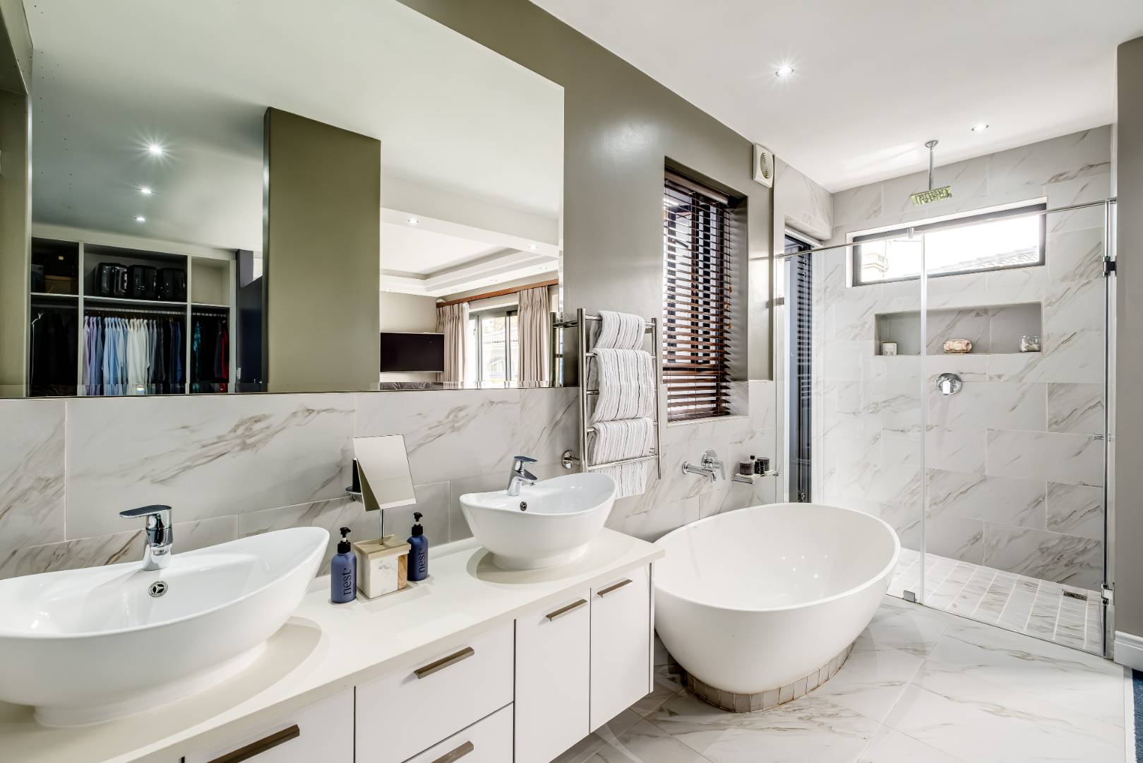 With the curb appeal you desire, one is received by a tiled triple garage with an extra 2 secure parking bays followed by a shining double volume staircase providing the natural light we all crave on entrance. Just a few steps up to the first floor where the pyjama lounge landing exists alongside the guest cloakroom and leads effortlessly to the bedroom wing, where all 4 bedrooms are located in close proximity. All bedrooms have their own private en-suite bathrooms and are either fitted with engineered wood flooring or plush carpets, with the luxurious main suite offering a generous walk-in closet, a full bathroom with an outdoor pergola covered Zen garden just one step outside the shower and sliding door access to the side garden.