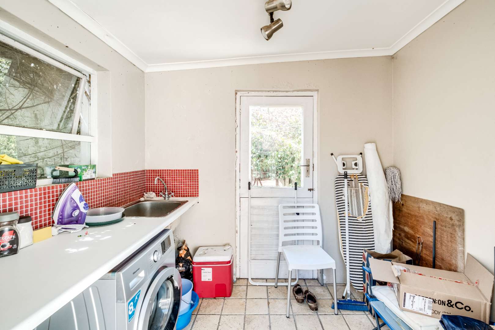 Staff accommodation in need of your love is located next to the double garaging with an extra storage space for motor bike/ bicycles etc.