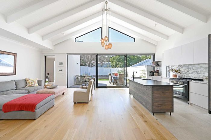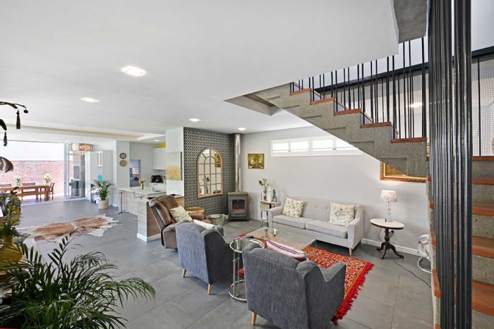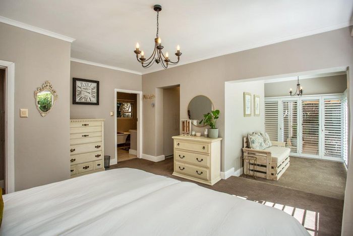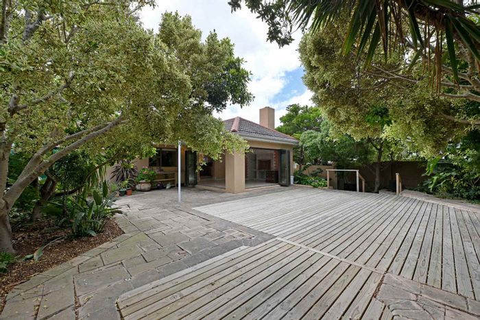 Claremont retreat with leafy front garden and sunlit back garden (pool potential), open-plan lounge to patio and fireplace, gas kitchen, plus 8-bed flatlet yielding R40,040+/month.